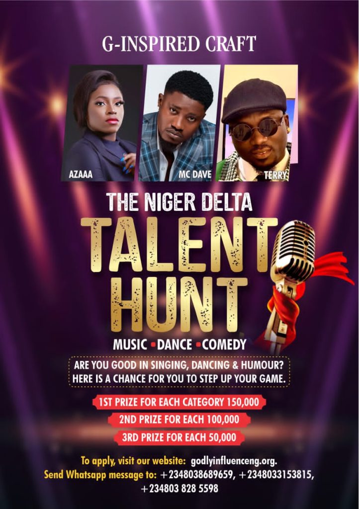 The Niger Delta Talent Hunt / Skill Acquisition project stands as one of Godly Influence International Initiative’s flagship programmes for empowering Niger Delta youths. It is designed to combat unemployment, nurture creativity, and encourage skilled and talented individuals.